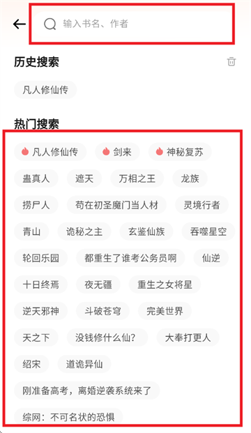 在搜索框输入想看的小说,若热门搜索有想看的小说也可以直接点击该小说名