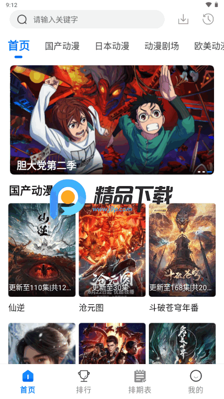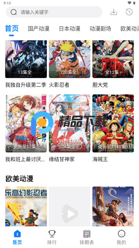 1、首页有很多的动漫资源类型,国产动漫、日本动漫以及欧美动漫等类型。