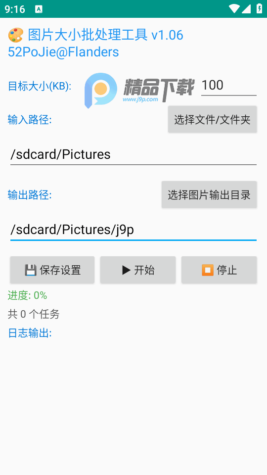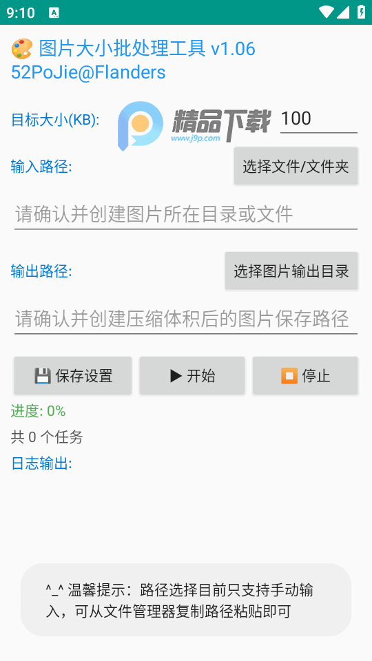 4、测试开始后,点击【开始】开始批量压缩对应输入文件夹中的图片,点击【停止】可停止当前的处理任务;