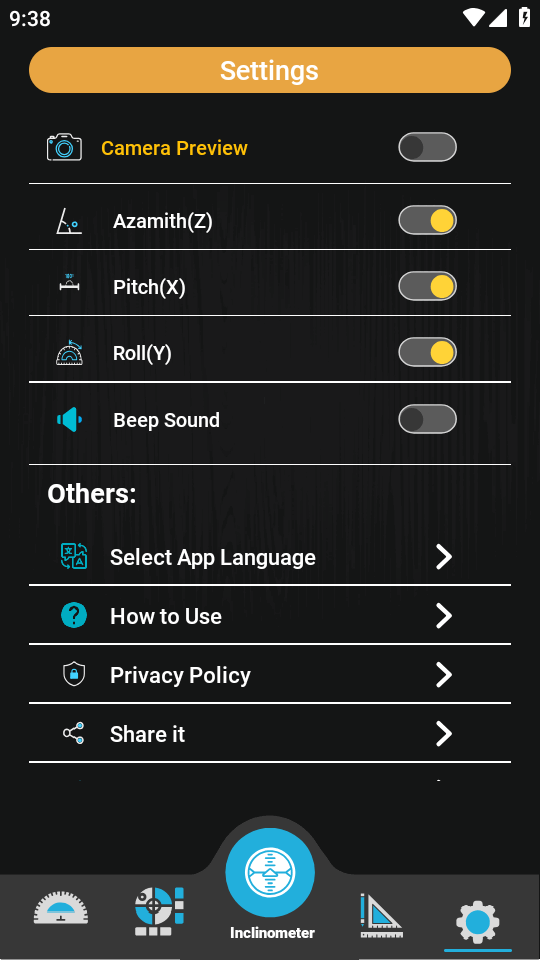 功能非常全面的一款手机实用工具箱,倾斜仪app全名LVL Tool: Measure Angle是一个集成了气泡水平仪、测斜仪、卷尺和坡度计算器,直角器等多种测量工具为一体的功能,所有功能可以直接使用,虽说不支持中文,但是使用也不难,有需要测量身边又没工具的可以备一个。