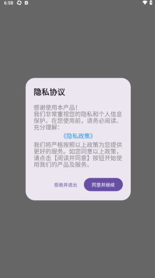 1、打开软件阅读用户隐私协议,点击同意并继续即可进入软件首页。