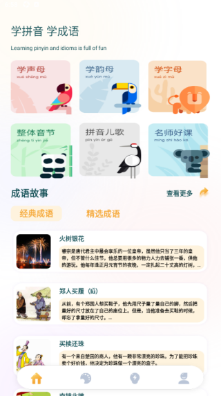 1、拼音教学:涵盖声母、韵母、整体音节及声调练习,配有互动游戏和儿歌帮助掌握标准发音。