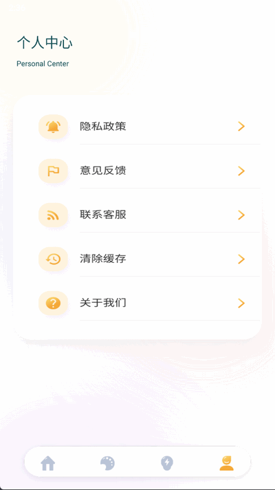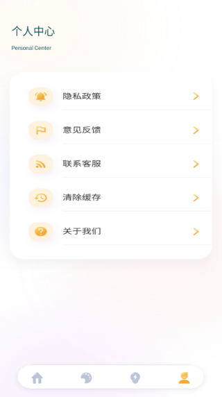 4、来到软件个人中心页面,可使用隐私政策、一键反馈、联系客服等功能。