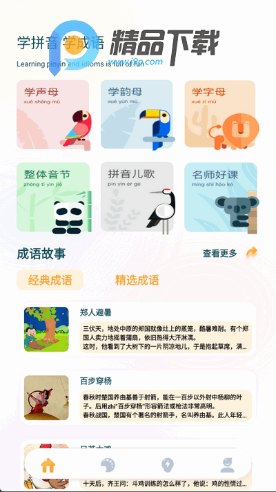 2、成语故事:通过生动情节与形象化解释,让用户轻松理解并记忆成语的含义及用法。