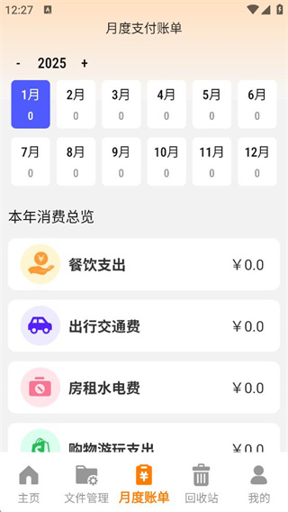 4、阅读账单,内置工作、生活、游玩账单,支持自定义分类,配合搜索功能快速定位目标进行账单详情查询。