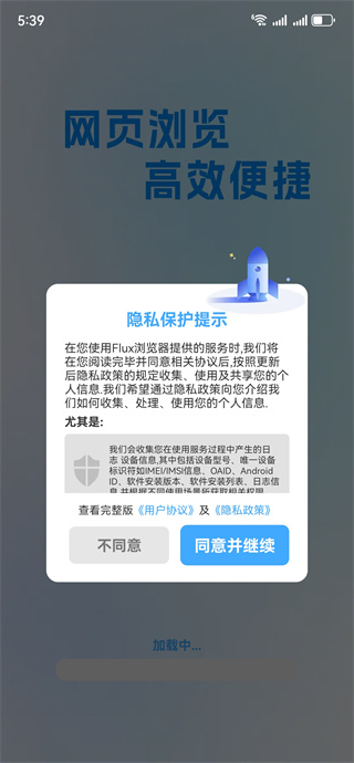 1、阅读用户协议和隐私政策之后点击同意并继续;