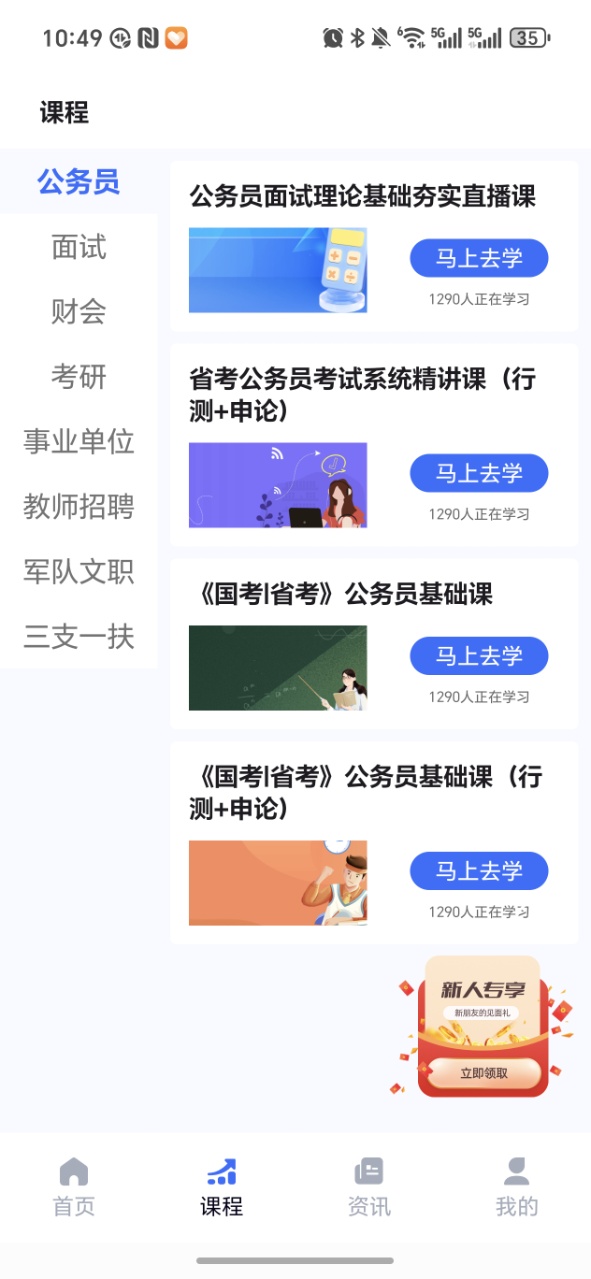 课程学习:整合粉笔、华图公考等知名机构精华内容,涵盖事业单位招聘、三支一扶等各类课程