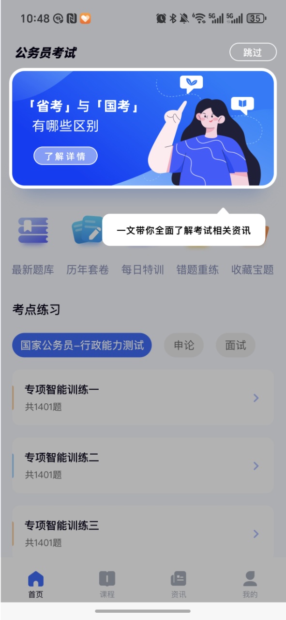 题库练习:提供紧跟考纲的公务员、事业单位考试题库,覆盖行测、申论、面试全模块