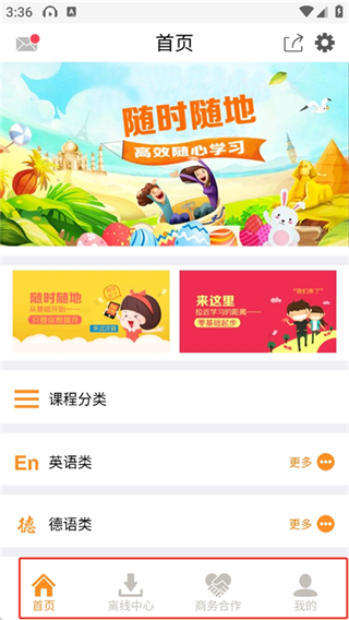 2、可以看到首页、离线中心、商务合作、我的等四个模块。