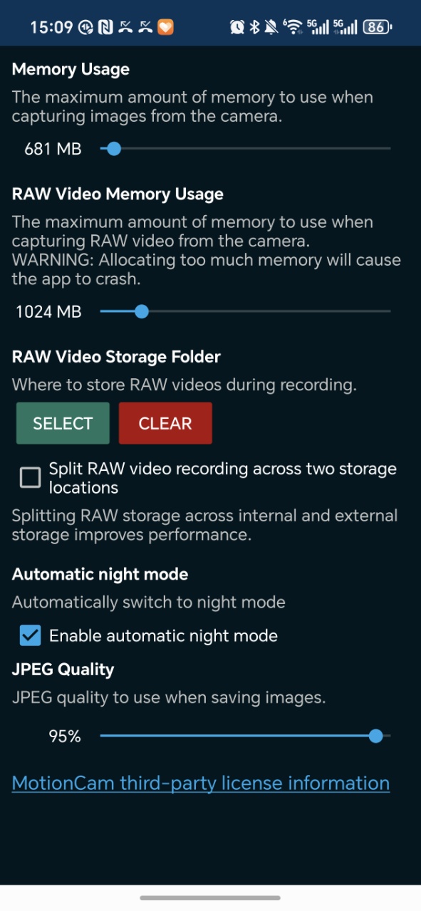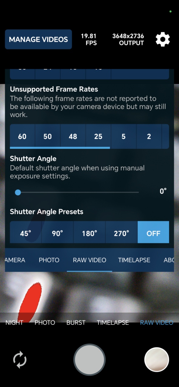 RAW 录制: MotionCam Pro的独特之处在于其RAW格式。拍摄时请注意,RAW文件体积巨大,会迅速占用存储空间。