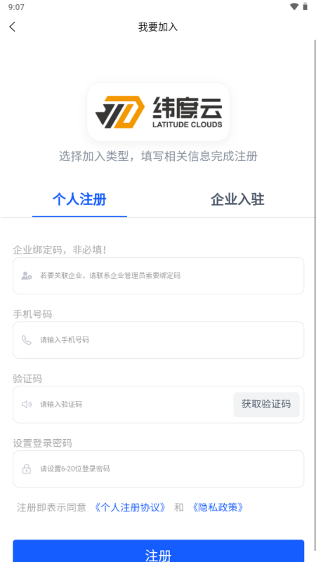 4.如需关联企业,可输入企业绑定码(非必填)