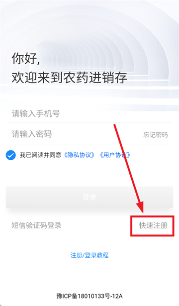下载安装并打开益农管家农资版,进入登录界面后点击快速注册