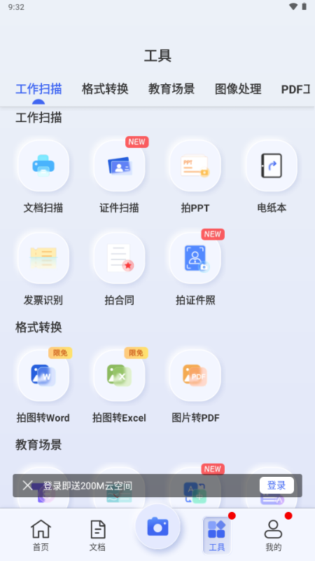 功能全面:集文档扫描、文字识别、PDF 转换等多种功能于一体。