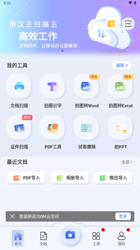 1、进入汉王扫描王App,登录;