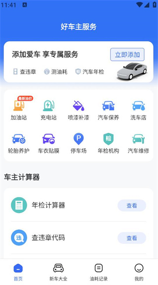 2、打开app即展示充电桩、加油站搜索功能,以及洗车、维修等周边服务入口,一键触达所需服务。