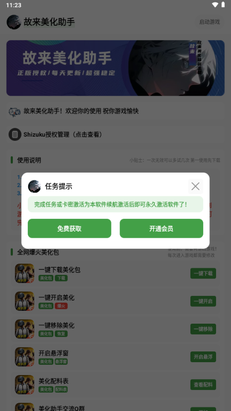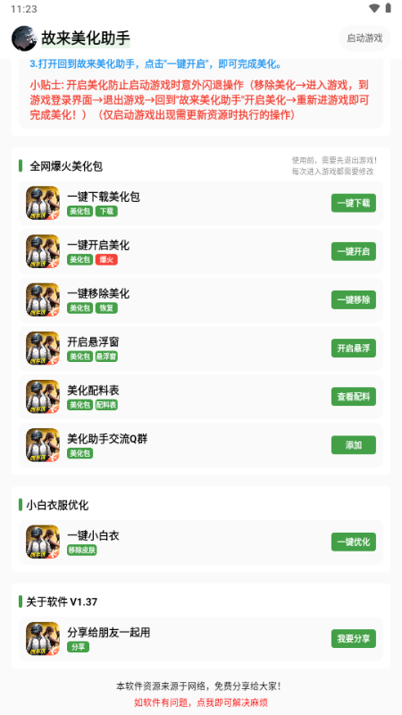 故来美化助手是一款专业且实用的和平精英美化工具,适配多种手机型号,能够为玩家打造个性化的视觉盛宴。它操作简便,一键即可解锁并导入美化包,游戏画质清晰且运行流畅,不会出现卡顿现象。该软件支持自定义参数设置,并能自动保存配置,方便玩家下次使用。