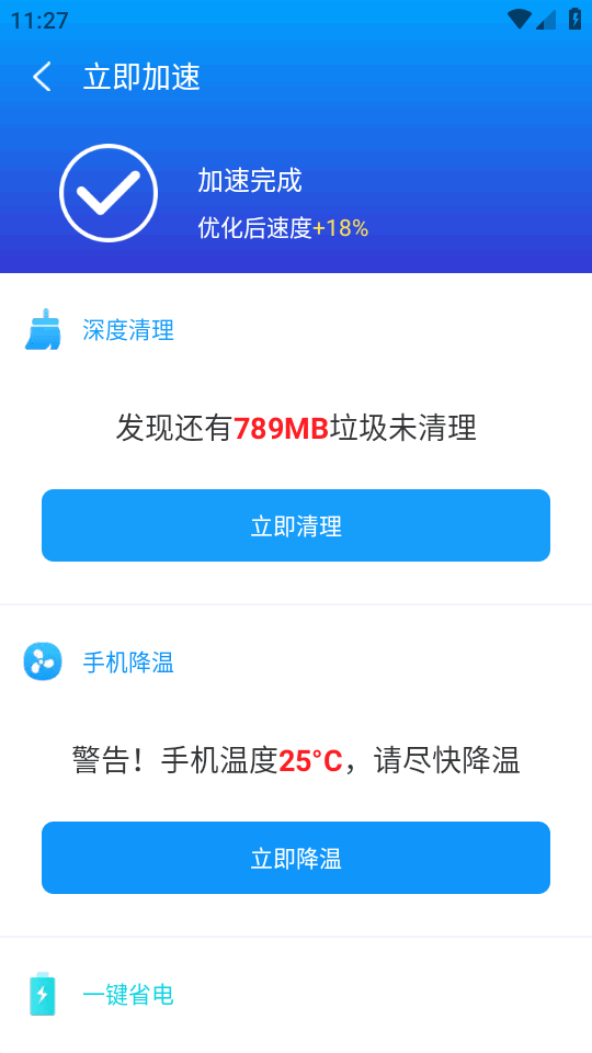 6、软件会自动帮你快速加速,并支持更多操作优化手机性能。