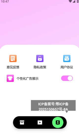 4、进入个人中心使用中支持意见反馈,提供隐私政策与用户协议。
