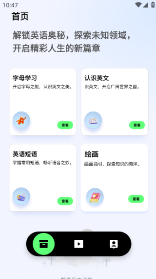 3、简单又便捷的界面,直观易操作,无论是新手用户还是初学者的用户都能轻松上手,学习英语单词和口语。