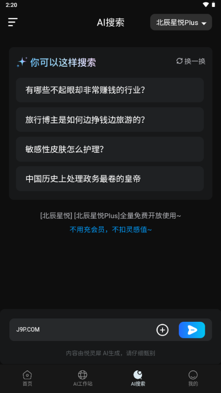 4、app中提供的ai搜索功能是免费的,用户可以在上面与ai进行对话式高效搜索