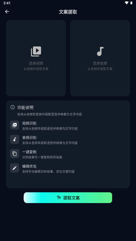 一键提取文案:轻松复制各大平台文案,激发创作灵感。