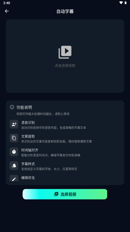 自动字幕生成:将声音快速转换为字幕,提高视频制作效率。