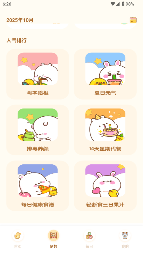 1、进入软件在倒数页面可以添加一些打卡事项。