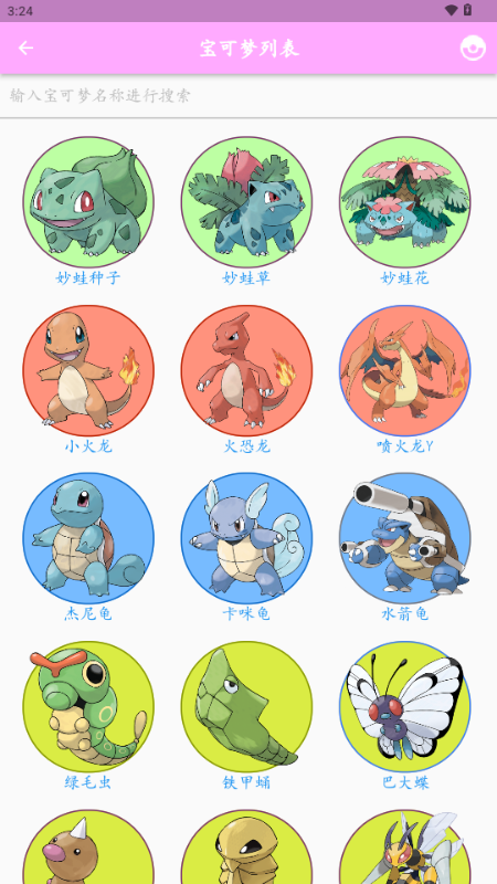 2、点开宝可梦列表可以看到各类宝可梦