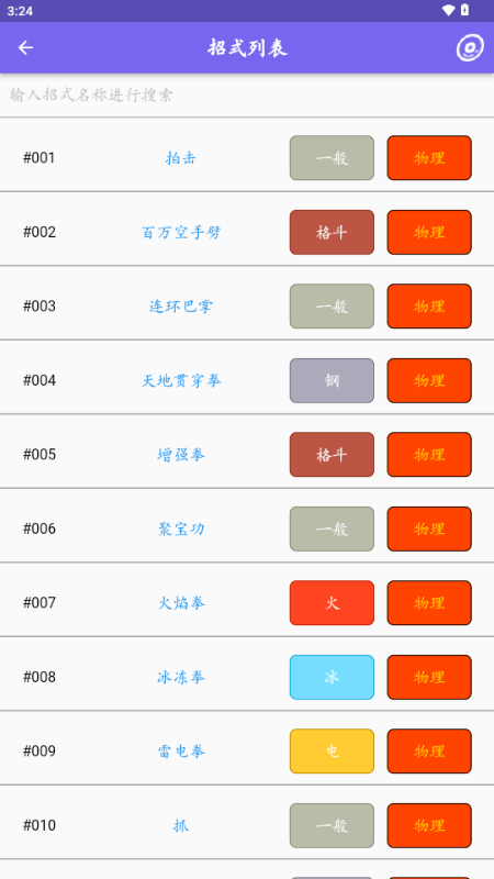 4、招式列表版块可以获取到各类招式