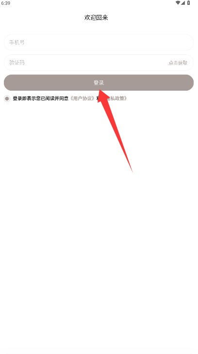 2、进入登录界面输入手机号码和验证码,勾选同意相关协议后点击登录按钮进入。