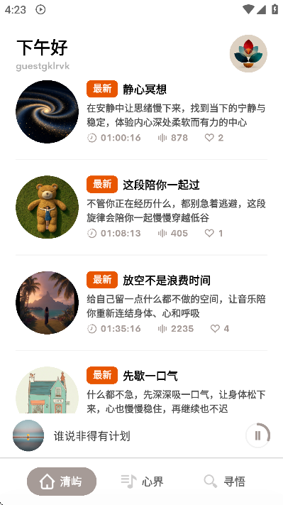 正念引导:支持冥想练习中的正念引导与打坐音频。