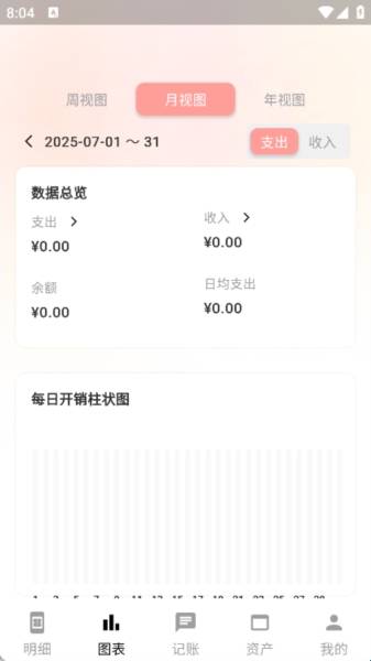 2、在图表页面中可以进行周视图、月视频以年视图的展示,用户观看更加一目了然。