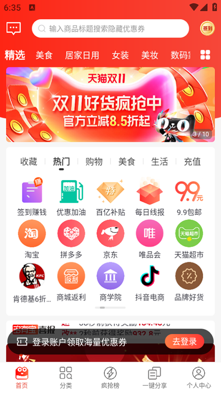 合作伙伴几乎涵盖了所有领域知名电商,百万大额优惠券每日海量更新。