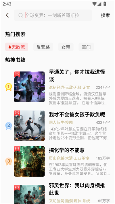 海量热门的正版小说,免费畅快读全本,都市爽文、玄幻修仙、架空历史、现代言情、总裁豪门、穿越经典……热门好书应有尽有。