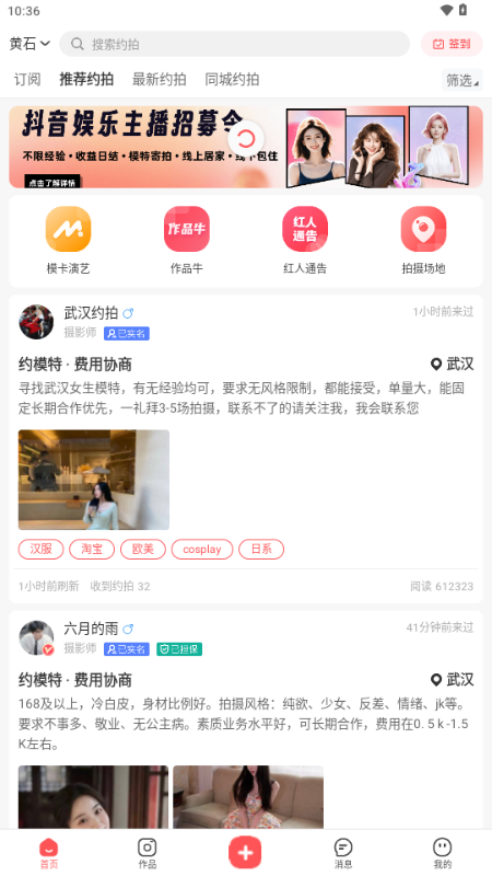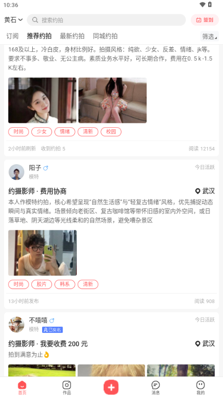 约拍动态:在线发布约拍动态,展示个人作品,吸引合作意向。
