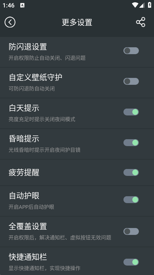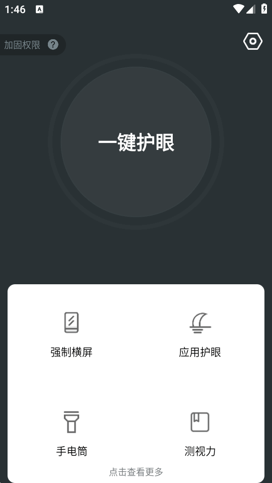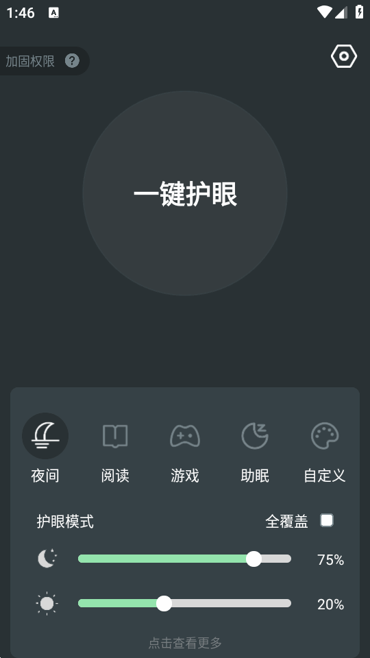 2、点右上角的设置按钮,可以设置自动护眼,全护眼覆盖等设置。
