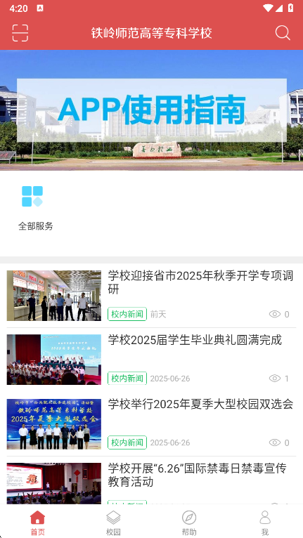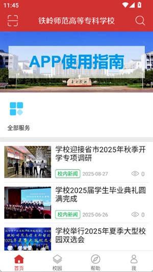1、在本站下载安装铁岭师专高等专科学校app打开,可以看到首页提供了校园的最新资讯动态