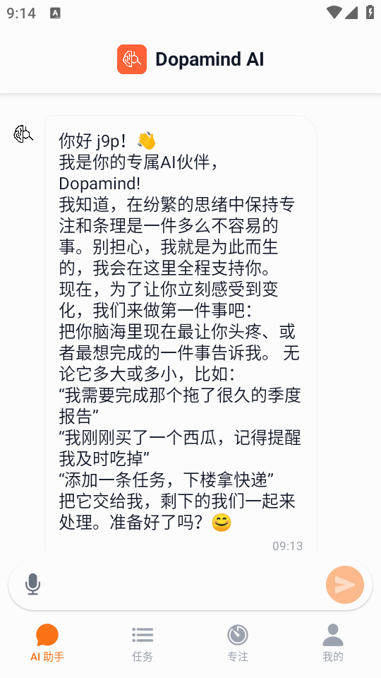 将ai与专注高效率任务待办结合一体的应用,Dopamind app是专门为ADHD用户设计,通过ai对话和科学的方法,让你的任务变得更加简单直观,告别传统复杂的任务工具,让你在完成任务时更有成就感,告别不知从何下手,让ai帮你理清思路,用对话来管理生活的不错选择。