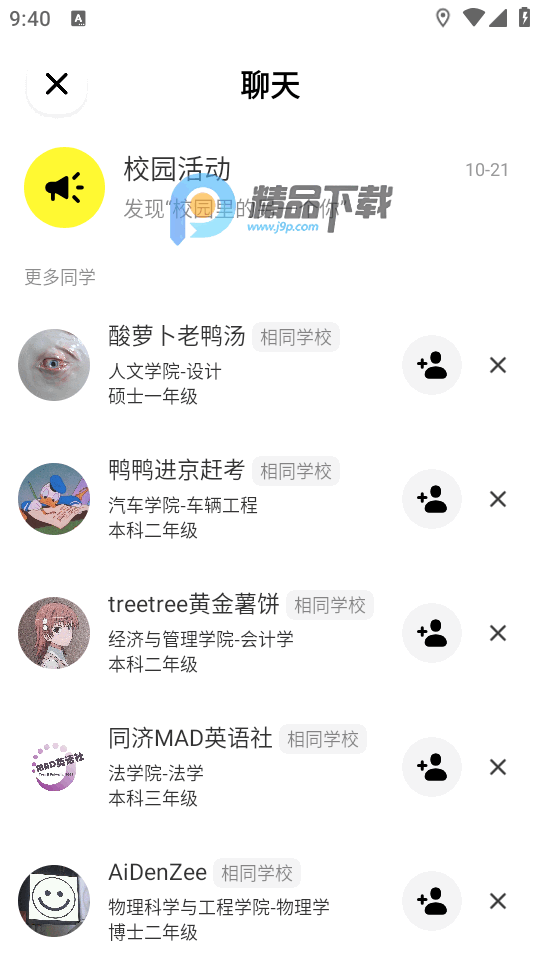9、在聊天界面可以认识更多的同学。