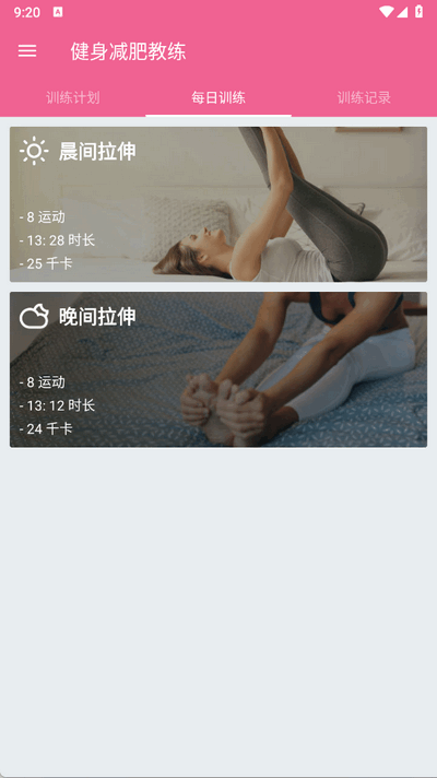 健身减肥教练app是一款健康运动服务,这些训练计划包含手臂,臀部,腹部和腿部的锻炼,适合夜间、晨间进行健康锻炼的课程都有,用户在家即可轻松进行锻炼,非常的好用,有需要的用户快来下载吧。