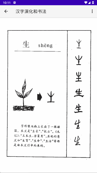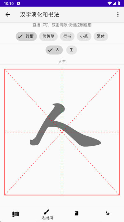 汉字演化和书法是一款方便查询汉字演化及字体的应用软件,用户可以在这里进行汉字的演化查询,可以进行书法的练习,用户可通过该软件了解汉字的演化历程,提升自身文化素养,感兴趣的用户快来下载吧。
