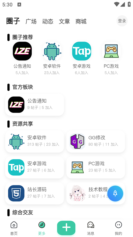 1、在本站内下载安装并打开软件进入首页“圈子”板块,浏览推荐的兴趣圈子。