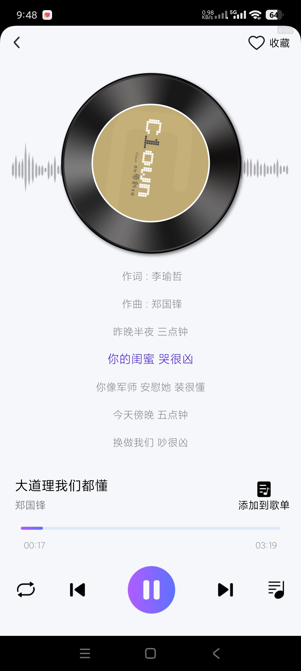 歌单管理:支持自定义歌单创建,打造专属音乐收藏。