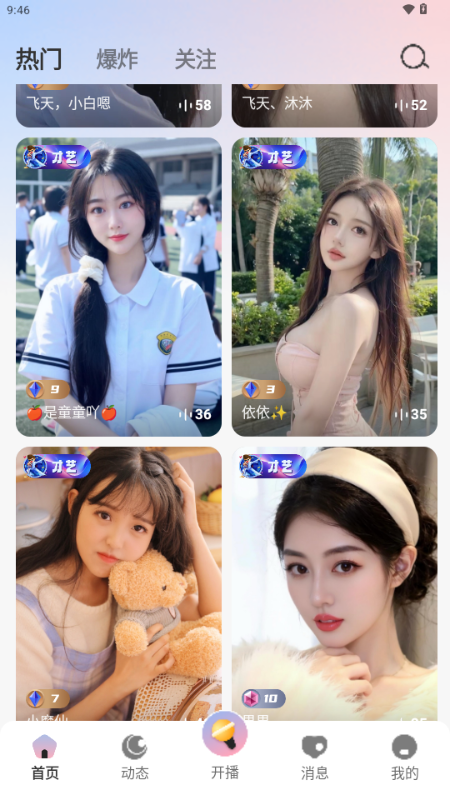 多样直播:校花校草、草根网红、百变主播,内容丰富。