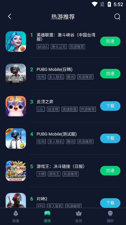 2、选择自己感兴趣的游戏,点击下载或者是加速。
