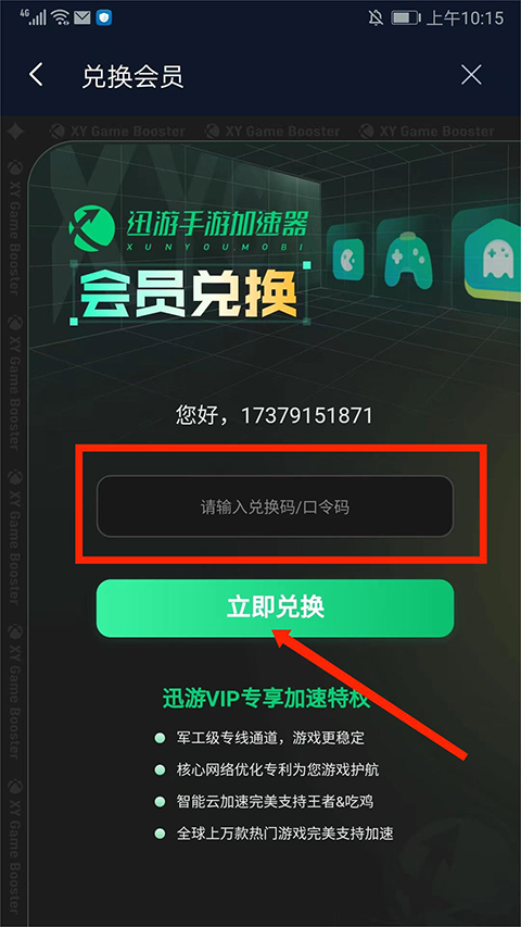 3、进入【兑换会员】界面,在输入框输入兑换码或者兑换口令后,选择【立即兑换】即可兑换会员了。