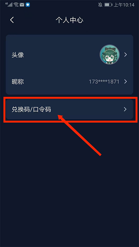 2、进入【个人中心】界面,选择下方【兑换码/口令码】选项,