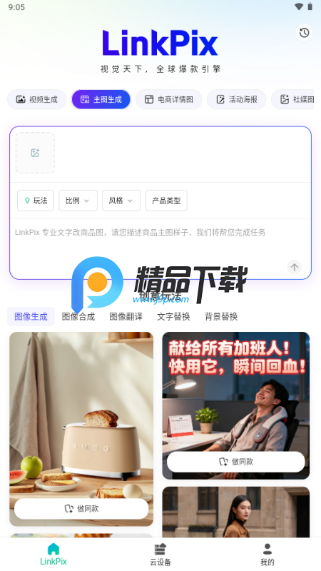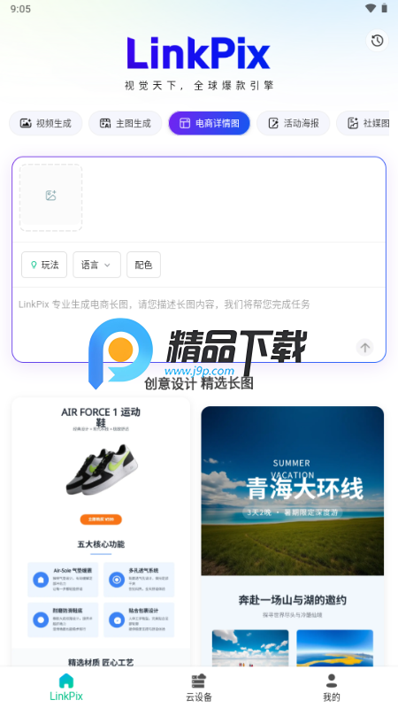 只需输入文字描述,从电商主图、详情图,到营销海报、社媒图文,LinkPix都能精准捕捉需求,快速生成高清图片。
