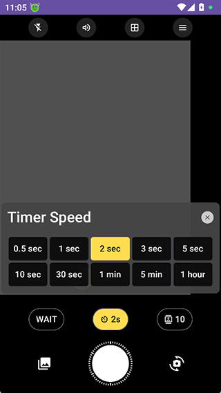 定了在应用开始连拍时,每张照片之间的拍摄间隔时间,即连拍的频率