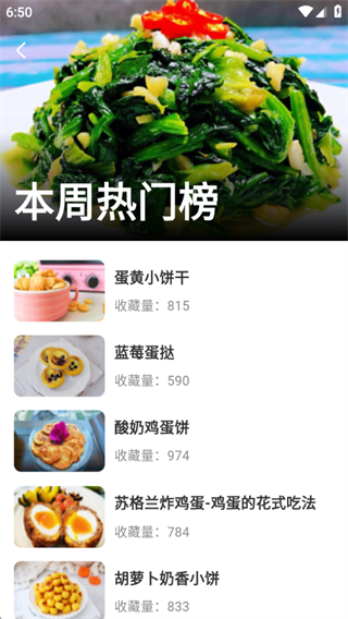 1、进入app就能看到本周热门菜谱推荐,还提供不同分类;